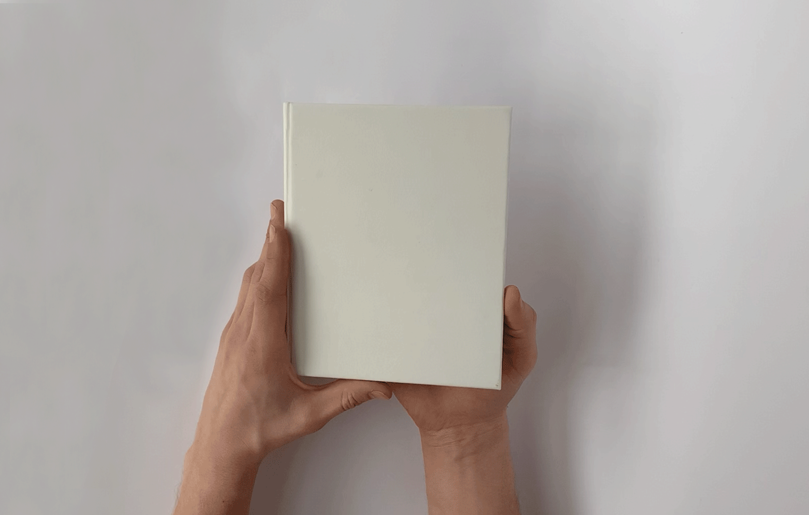 // The untouchable book filled with portraits of anonymous individuals. Their portraits only barely peak out through slivers between each page.